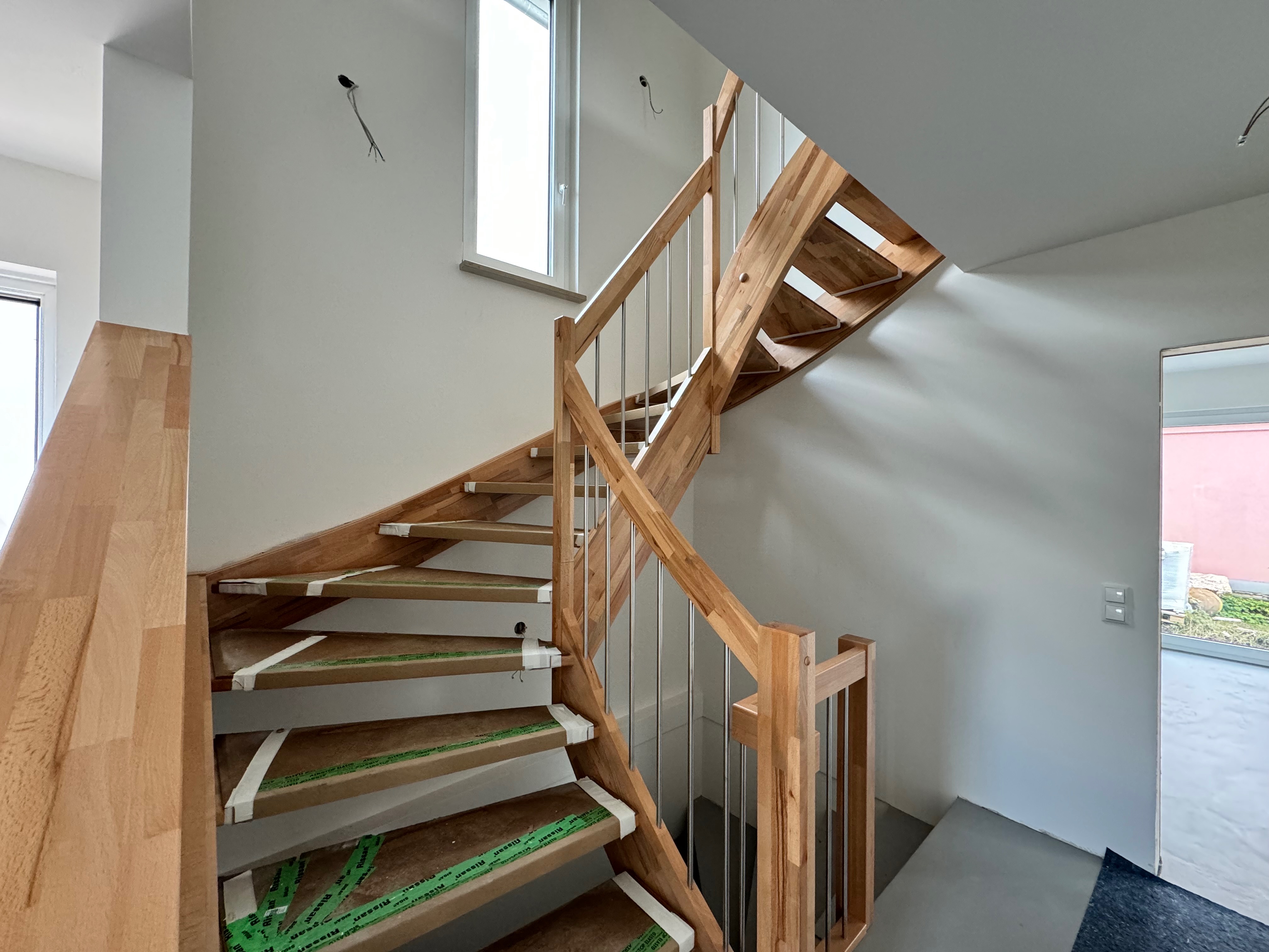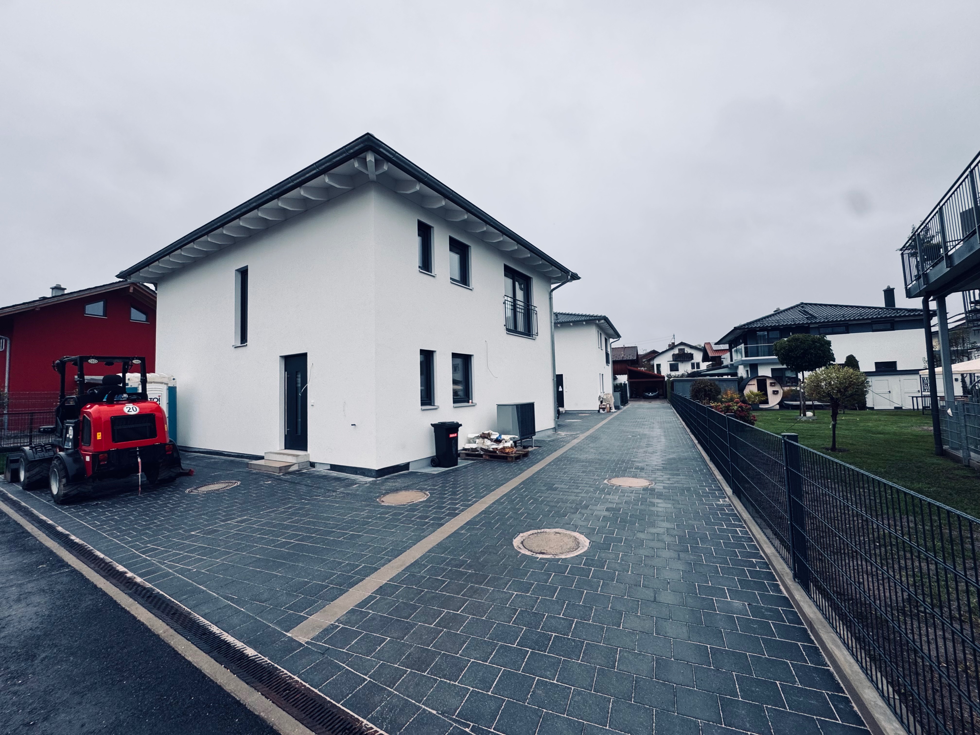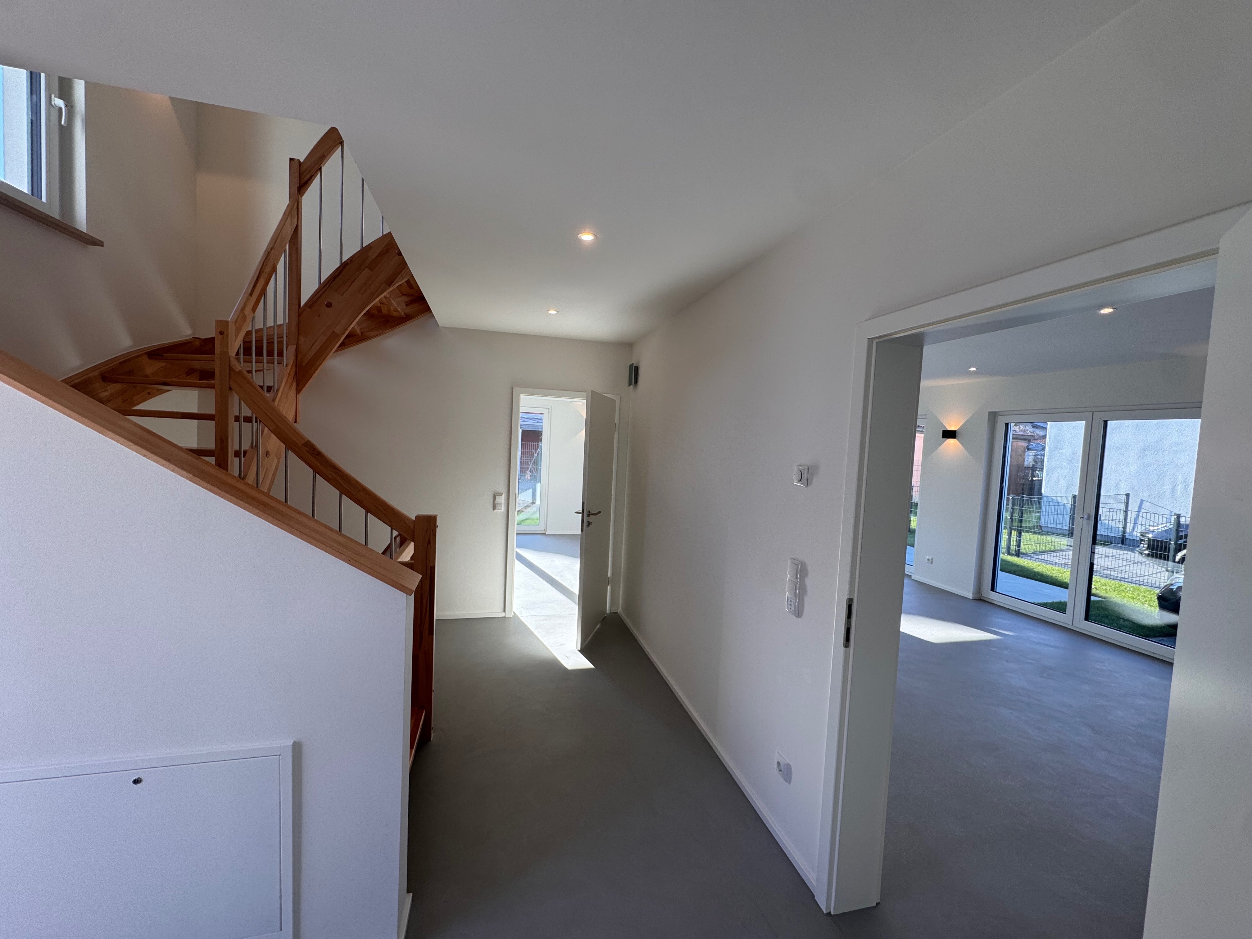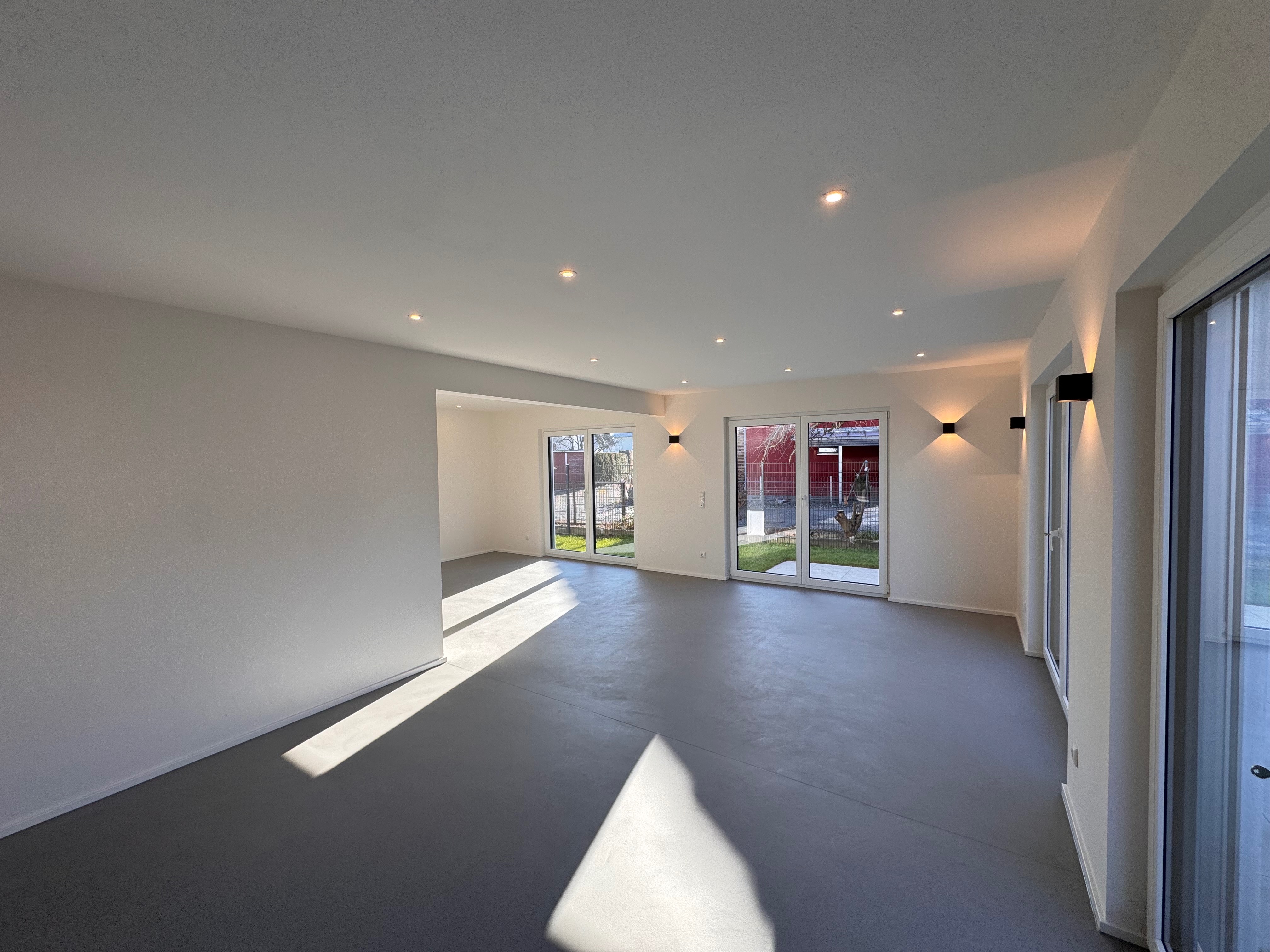 Wir vermieten ein neu errichtetes energetisches Einfamilienhaus, voll unterkellert. Im Keller ist ein Raum als Büro vorgesehen. Hier finden Sie auch LAN Anschlüsse.